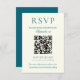 Cartão RSVP Classic Teal Blue Minimalist Wedding QR Code