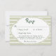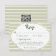 This whimsical coastal wedding response card with a QR code features a lace border and stylish sage green stripe background. Perfect for a beach or California destination wedding. Created by Simply Farmhouse Press.