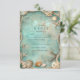 This wedding design features a serene coastal palette with soft aqua tones, hand-painted seashell details, and an elegant rope frame inspired by vintage seaside illustrations. Starfish and shell accents are balanced with refined typography, creating a look that feels romantic, calm, and timeless rather than overly nautical.