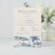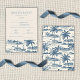 Make your wedding planning effortless and elegant with this textured RSVP card insert, featuring a stunning dusty blue coastal hand-painted pattern. This design showcases delicate details of palm trees, sailboats, and seaside cottages, perfect for setting the tone of your beach wedding or coastal-inspired celebration.
