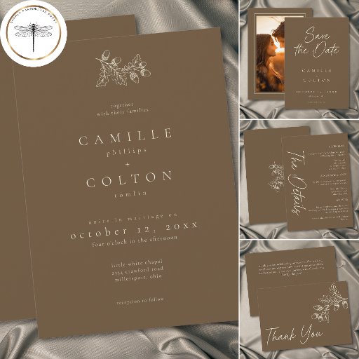 Cocoa Brown Minimalist Leaf Acorn Fall WeddingCriado por Kathe Santillo