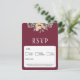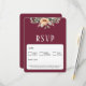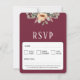 Cartão de resposta RSVP de casamento com flores de damascos e folhagem de jardim. Um simples, mas elegante design botânico contemporâneo inspirado no estilo boho vintage. Inclui espaço para código QR e endereço do site de casamento.