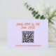 Uma simples e elegante carta colorida retro de casamento. Isso tem um moderno e único plano de fundo leve roxo com script laranja e código QR personalizável. Minimalista e chique com risca ousada. Tudo é editável clicando no botão personalizar.