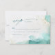 Este cartão de RSVP de casamento abstrato moderno na praia com Código QR apresenta fontes modernas da moda com caligrafia de roteiro elegante, emoldurado por respingos de tinta alcoólica em verde e dourado.