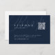 Cartões de resposta de código QR de casamento minimalista clássico moderno apresentam caligrafia elegante e detalhes do evento em fonte serifada atemporal em azul marinho e branco editáveis, simples e sofisticados, Ótimo para casamento vintage formal, casamento tradicional romântico, casamento clássico moderno e outros eventos. Veja todas as peças correspondentes na coleção.
