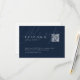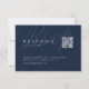 Os cartões RSVP de código de QR minimalistas modernos apresentam detalhes elegantes de caligrafia e evento de fonte de serif eterno em azul e branco marinho editável a cores, simples e sofisticado, Excelente para casamento vintage formal, casamento tradicional romântico, casamento clássico moderno e outros eventos. Veja todas as peças correspondentes na coleção.