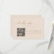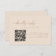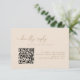 Um cartão RSVP de casamento bege/bronzeado moderno e elegante, projetado com letras de script e um código QR para seus convidados digitalizarem e RSVP. Personalize com sua própria redação, site de casamento e prazo de resposta.
