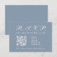 Cartão RSVP Código QR de Casamento em Azul Empoeirado Caligraf