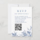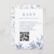 Cartão RSVP Código QR de Casamento Floral Azul Vitoriano Elega