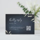 Design verde de folhagem botânica com cor aquática moderna em fundo azul-marinho, simples e elegante, cartão Rsvp de código QR de excelente para casamento moderno, casamento rústico e casamento de jardim botânico no verão e outono. Ver todas as peças correspondentes na coleção
