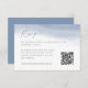 Projetado para coordenar com a nossa coleção de convites para o casamento do Bei Tide, este simples e chic cartão de resposta para o casamento mostra cinzas em um fundo branco com uma lavagem da cor azul-litoral de água no topo. Personalize o código QR para permitir que os convidados pesquisem e RSVP facilmente. Uma elegante e eterno procura pelo seu casamento de verão.