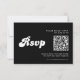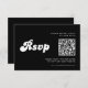 Cartão RSVP Código QR de Casamento Preto e Branco da Retro na