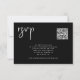 Um cartão RSVP on-line de código QR preto de varredura moderna minimalista.