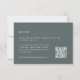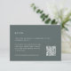 Este cartão RSVP moderno da coleção Sierra Dusk da Redwood & Vine Design Co. torna o planejamento digital de casamento sem esforço. Apresentando um fundo verde de ardósia limpo, tipografia minimalista, e um código QR para respostas fáceis online, é uma escolha na moda para casamentos elegantes russos nas montanhas ou no deserto. Perfeito para casais que abrem o estilo de conveniência e eterno moderno.