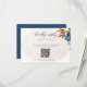Este lindo cartão floral de cercado contém marinho de aquarela e flores ferrugem, seu site de casamento QR Code e seu texto personalizado. O inverso é um azul profundo. Todo o texto da placa pode ser alterado para atender às suas necessidades. Use a modelo para preencher suas informações. O recurso "Personalizar mais" pode ser usado para alterar a fonte (tamanho, estilo, cor) e adicionar mais linhas de texto, alterar o layout e adicionar texto ao verso.