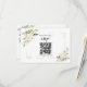 Design de cartão elegante com flores brancas e folhas verdes de cor d'água, uma falso estrutura quebrada de brilho dourado, seu código QR para RSVP on-line, em um fundo branco. Use a ferramenta Personalizar para adicionar suas informações. Para obter itens correspondentes, visite minha coleção de casamento de código QR.