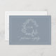 Cartão RSVP Código QR Dusty Blue Leafy Crest Monograma Casamen
