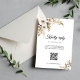 Este cartão de confirmação de presença com Código QR Floral Branco Verde combina beleza botânica atemporal com conveniência moderna. Flores brancas suaves e folhagens exuberantes enquadram um layout limpo, enquanto o código QR permite que os convidados respondam sem esforço com um simples scan.