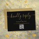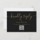 Cartão RSVP Código QR Preto e Dourado Elegante Responder com C