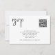 Um cartão RSVP on-line de código QR preto e branco de varredura moderna minimalista.