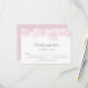 Este elegante e bonito cartão de resposta RSVP ilustra as flores cor-de-rosa daisy ao longo do topo. A parte de trás tem um padrão geométrico/floral branco com uma cor de fundo rosa que pode ser trocada para qualquer cor da sua escolha. O texto pode ser personalizado de acordo com o seu gosto pelo evento especial. Designs de convite correspondentes também estão disponíveis.