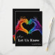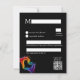 Apresentando o cartão de casamento RSVP da coleção "Heart of Pride", combinando elegância sem falhas com funcionalidade para garantir que as necessidades dos convidados sejam atendidas e mantendo uma estética sofisticada. Esta placa vertical apresenta um design surpreendente com um fundo preto profundo mostrando o vibrante trabalho de arte do "Coração do Orgulho" — duas mãos formando um gesto cardíaco em cores LGBT radiantes. No verso, os convidados encontram espaço suficiente para escrever seus nomes e o número de participantes, ajudando os hosts a planejar com precisão. Abaixo, uma declaração clara incita os convidados a indicar sua resposta, seja a aceitação ou o declínio, simplificando o processo de RSVP. A legenda "Por favor, responda", acompanhada do prazo RSVP, que garante clareza e organização, é mostrada graciosamente no topo. A luxuosa trabalho de arte, com suas ousadas matizes arco-íris contra o pano de fundo negro, acrescenta um toque de elegância moderna, dando o tom perfeito para a celebração. Além dos detalhes padrão de RSVP, é alocada uma linha extra para os convidados mencionar qualquer alergia à comida, garantindo seu conforto e segurança durante as festividades. Além disso, um espaço dedicado permite aos hóspedes solicitar músicas para a comemoração, acrescentando um toque pessoal e aumentando seu envolvimento na ocasião alegre. Dada a importância da placa RSVP, é aconselhável usar um envelope para enviar, preservar sua aparência primitiva e garantir que ela chegue com segurança aos destinatários. À medida que os hóspedes se engajam com o cartão RSVP, eles são apresentados à vibrante coleção "Coração do Orgulho", oferecendo uma variedade de artigos de papelaria correspondentes para um conjunto coeso e na moda para a celebração do casamento.