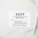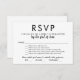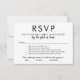 Os cartões RSVP de casamento modernos apresentam texto personalizado que pode ser personalizado para suas necessidades específicas. Esta versão inclui a data de vencimento da resposta, o texto único e criativo "com sinos ligados" e as opções de janto plata para os convidados escolherem.