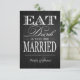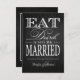 Coma Bebida e seja casado - Cartões RSVP de Champanhe Metálico Elegante. Convites Carimbos Imã salve o dia