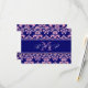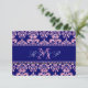Envie estes Cartões de Confirmação de Casamento Lindos para os seus convidados para o seu casamento temático em rosa e azul marinho como um inserto para o seu convite de casamento. Este design divertido, mas sofisticado, consiste em um Padrão de Damasco Vintage Azul Marinho, efeito de glitter rosa IMPRESSO, Seu Monograma na frente e o texto de confirmação de casamento no verso. Personalize com as suas informações.