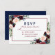 Cartão de Confirmação de Casamento Azul Marsala Borgonha Floral em Aquarela - Verso Azul