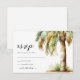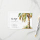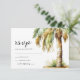 Cartões de confirmação de casamento de destino na praia com um fundo branco simples, palmeira tropical em aquarela e modelo de confirmação fácil de personalizar.