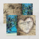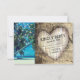 Cartões-resposta de casamento tropical exótico com uma ambientação de verão na praia, luzes cintilantes e uma palmeira rústica com um coração esculpido com os detalhes do seu rsvp.