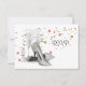 Convite de festa de 21 anos para mulher com saltos brancos brilhantes e champanhe. Adicione seus detalhes na frente e no verso adicionando detalhes do evento, estilo de fonte, tamanho e cor da fonte e texto. Por favor, note que todos os desenhos de convite que você encontrará na Zazzle são gráficos impressos sem joias, laços, relevos, rebaixos ou peças ou partes adicionadas.
