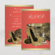 Modelo de RSVP para festa de aniversário com laranja de goiaba elegante e sapatos de salto alto dourados. Este lindo RSVP de festa com sapatos de salto alto dourados e cor laranja coral pode ser facilmente personalizado para o seu evento, simplesmente escolhendo o botão "Personalize!" para começar a adicionar os detalhes do seu evento, estilo de fonte, tamanho e cor da fonte e texto. Por favor, note que todos os adesivos, cartões e convites que você encontrará na Zazzle são gráficos impressos sem joias, laços, relevos, ou peças ou partes adicionais.