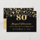 Cartões RSVP de celebração de aniversário festivos para qualquer idade com estrelas douradas e luzes de cordas na sua escolha de cores (mostrados com texto dourado e cores de fundo preto e dourado na frente e atrás para e 80). Faça alterações na EDIT. ASSISTÊNCIA: Para obter ajuda com a modificação ou personalização do design, alteração de cor, redimensionamento, transferência do design para outro produto ou, se você quiser coordenar itens, entre em contato com o designer ANTES de fazer o pedido via Chat Zazzle ou email makeitaboutyoustore@gmail.com.