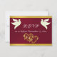 Cartão RSVP Coração, Doves e Fita - Borgonha/Dourado