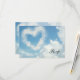 Adicione um toque elegante e celestial ao seu casamento ou ocasião especial com este lindo projeto de céu azul com um coração feito de nuvens no céu. Um efeito especial romântico e único para casais verdadeiramente apaixonados. Céu claro de dia com nuvens brancas suaves e sutis. Personalize com pré-visualização online instantânea.