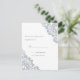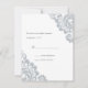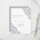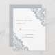 O trabalho de rolagem de ornamentado em cinzas pálidas decora os cantos deste cartão de resposta de casamento para enquadrar o seu texto personalizado. Um estilo clássico e suave para o seu dia especial. Disponível em cores alternativas com produtos correspondentes.