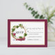 Cartão de confirmação de presença de casamento de coroa de madeira de uvas e videiras aquarela moderna e elegante - Fundo Borgonha e moldura dourada