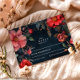 Um design exuberante de inspiração barroca floresce em ricos azuis da meia-noite e florais queimados do outono, perfeito para uma vibração moderna, mas romântica, do casamento. Profundamente atmosférica e cheio do charme de safra, esse layout floral é ideal para cerimônias de outono, temas de jardim gótico, ou qualquer casal que busque um tom dramático e elegante. Personalizável com seus nomes e detalhes de eventos, ele define a primeira impressão perfeita para seu grande dia.