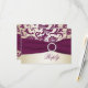 Este cartão de resposta em damasco elegante dourado claro e burgundy tem uma fita impressa de cor roxa ameixa e um broche de cristal que combina com o convite de casamento mostrado abaixo. Se você precisar de outros itens correspondentes, ou gostaria de ter em outra combinação de cores, envie um e-mail para niteowlstudio@gmail.com com sua solicitação. Os itens correspondentes são mostrados abaixo.