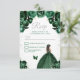 Esta elegante e glamourosa carta rsvp apresenta uma bela princesa com cabelo morena em um vestido verde-escuro. O texto combina o script manuscrito e as fontes sans serif modernas para um aspecto elegante e sofisticado. Os arranjos florais, borboleta e confete prateado criam a mistura perfeita de rústico e chic. Perfeito para uma doce festa ou festa de aniversário de dezesseis. Gráficos por www.etsy.com/uk/shop/SunflowerDayLove