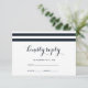 Cartão rsvp de casamento branco e azul costeiro moderno com faixas náuticas clássicas.