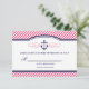 A design de resposta de RSVP de casamento pré-disquete com um gráfico de âncora náutica e um deslocamento de caligrafia elegante floresce em um padrão de faixa diagonal de tendência. Clique no botão PERSONALIZAR TI para personalizar fontes, mover texto e criar seu próprio design de convite exclusivo.