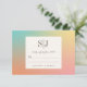 Gradiente de pastel no estilo retrorreflector amarelo-rosa azul com placa RSVP personalizada monograma. Este cartão é facilmente editável. Se precisar de ajuda para a personalização desta placa ou se precisar de mais produtos correspondentes para esta coleção, envie-me gentilmente através do Zazzle.