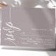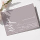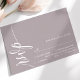 Marque sua presença com um toque de elegância eterno. Esta placa RSVP roxa empoeirada lavanda apresenta um roteiro de caligrafia gracioso, adicionando um toque de sofisticação à sua papelaria de casamento. O design minimalista garante clareza, enquanto a elegante fonte dá um toque de formalidade. Complementa perfeitamente o seu simples tema de casamento, este cartão RSVP se mistura sem esforço com estética romântica, química ou sofisticada. Personalize-o com seus nomes e detalhes de casamento para criar um pacote de resposta coesa para seu dia especial.