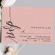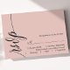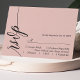 Marque sua presença com um toque de elegância eterno. Esta placa RSVP cor-de-rosa macia apresenta um roteiro de caligrafia gracioso, adicionando um toque de sofisticação à sua papelaria de casamento. O design minimalista garante clareza, enquanto a elegante fonte dá um toque de formalidade. Complementa perfeitamente o seu simples tema de casamento, este cartão RSVP se mistura sem esforço com estética romântica, química ou sofisticada. Personalize-o com seus nomes e detalhes de casamento para criar um pacote de resposta coesa para seu dia especial.