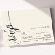 Marque sua presença com um toque de elegância eterno. Este cartão RSVP de creme de marfim apresenta um roteiro de caligrafia gracioso, acrescentando um toque de sofisticação ao seu papelão de casamento. O design minimalista garante clareza, enquanto a elegante fonte dá um toque de formalidade. Complementa perfeitamente o seu simples tema de casamento, este cartão RSVP se mistura sem esforço com estética romântica, química ou sofisticada. Personalize-o com seus nomes e detalhes de casamento para criar um pacote de resposta coesa para seu dia especial.
