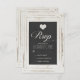 Esta placa RSVP de casamento vintage chic apresenta uma imagem impressa de um quadro de madeira rústica com lavagem branca com uma inserção de aparência de quadro chalkboard. O estilo tipográfico de letras adiciona elegância e romance. Perfeito para um casamento vintage, rústico ou country.