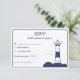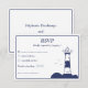 Um cartão RSVP elegante e simples com uma ilustração de um farol em tons azuis marinho para um casamento sobre temas marítimos e náuticos! Troque informações e envie para seus convidados!